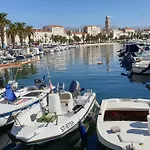 A tengerparti Bayview Apartman Trogir vendégei a teraszon pihenhetnek, a Park Ex Fanfognától 3 km-re. Az apartmanban Wi-Fi és ingyenes privát parkoló is elérhető.